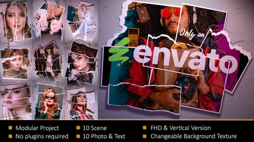 Ripped Photo Frame Slideshow - 61995024 - Project for After Effects Videohive After Effects Version CC | 1920x1080 | No plugins | 105.59 MB